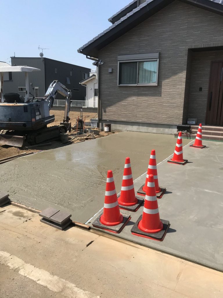 こちらも引渡しから半年くらいたってしまいましたが駐車場のコンクリートと境界のブロック工事です。