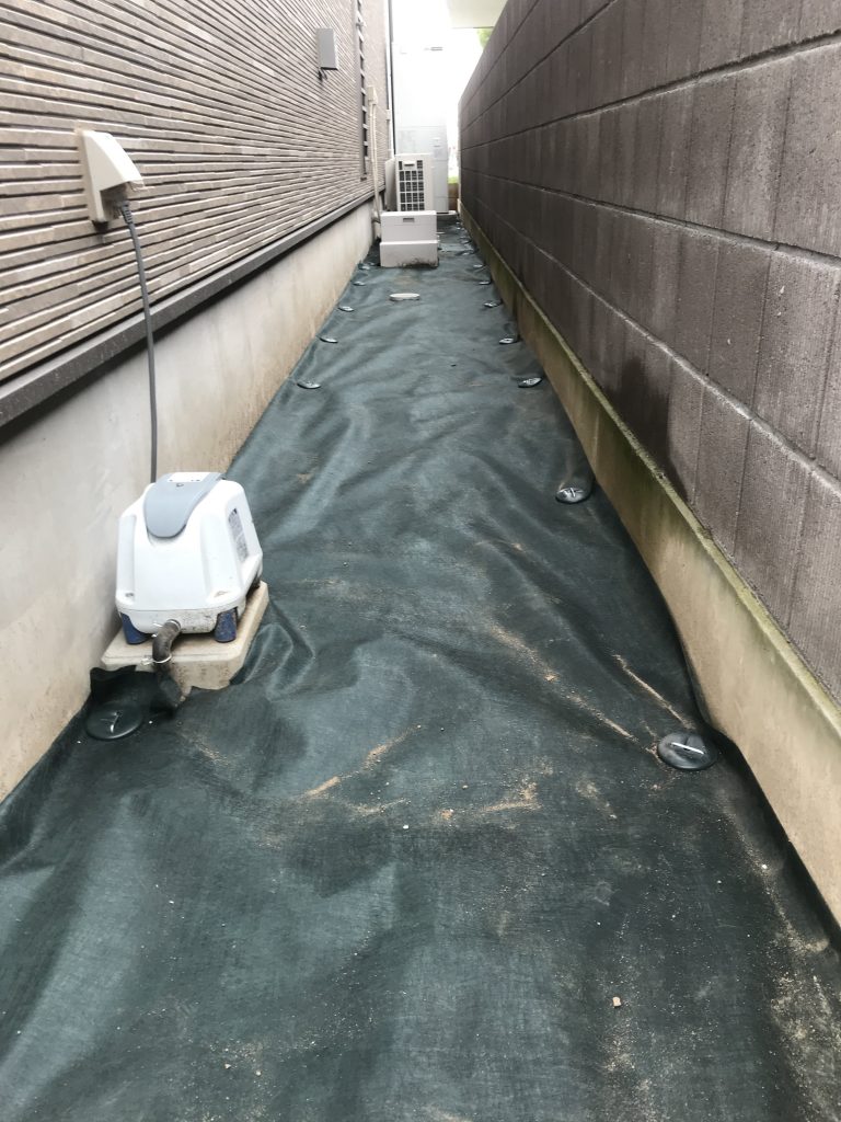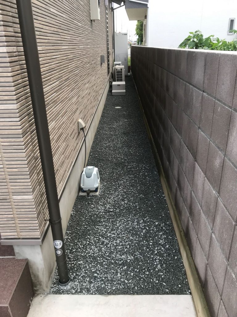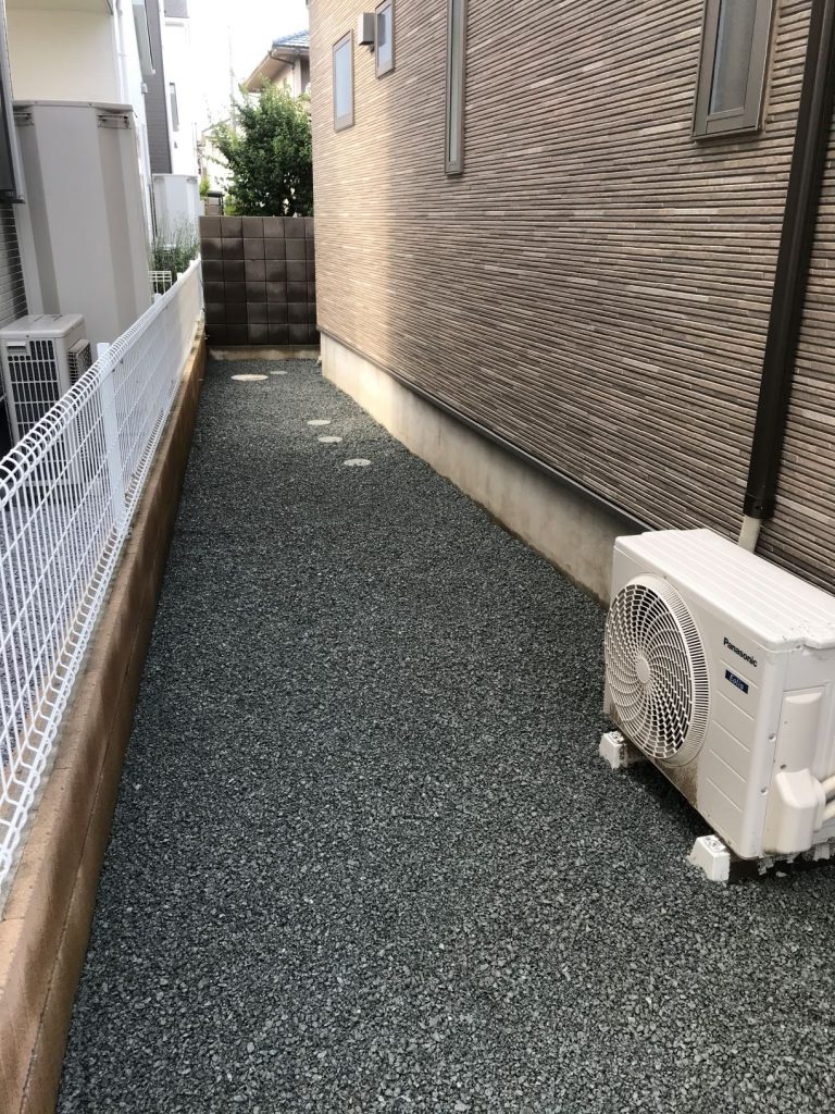 そこでまず家の周りに多いのが、防草シート+6号砕石敷きです。