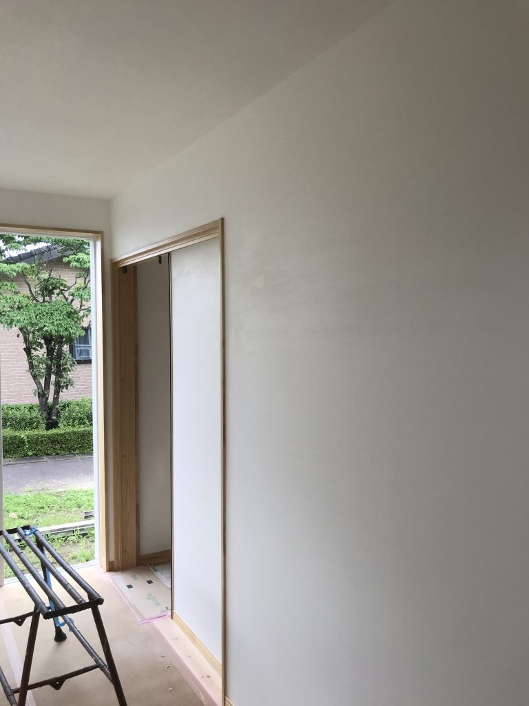 すでにクロスも終わっていますので左官屋さんが終われば後は洗面パネルやモイスを貼れば内装OK。