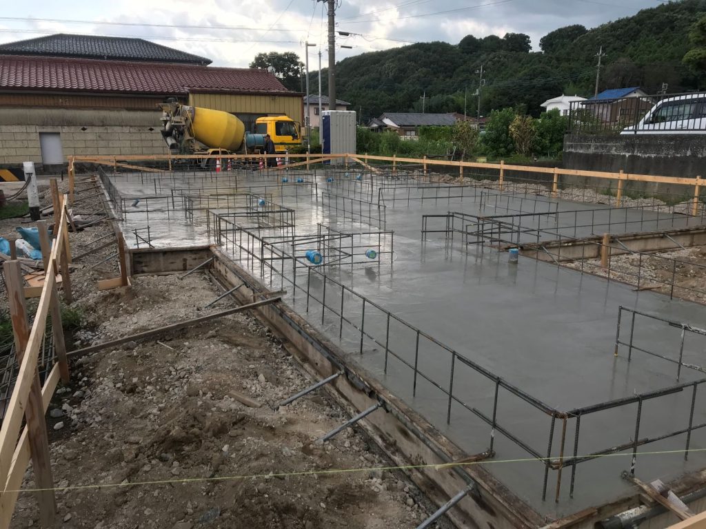 先日の土曜日にべた基礎のコンクリート打設を行いました。