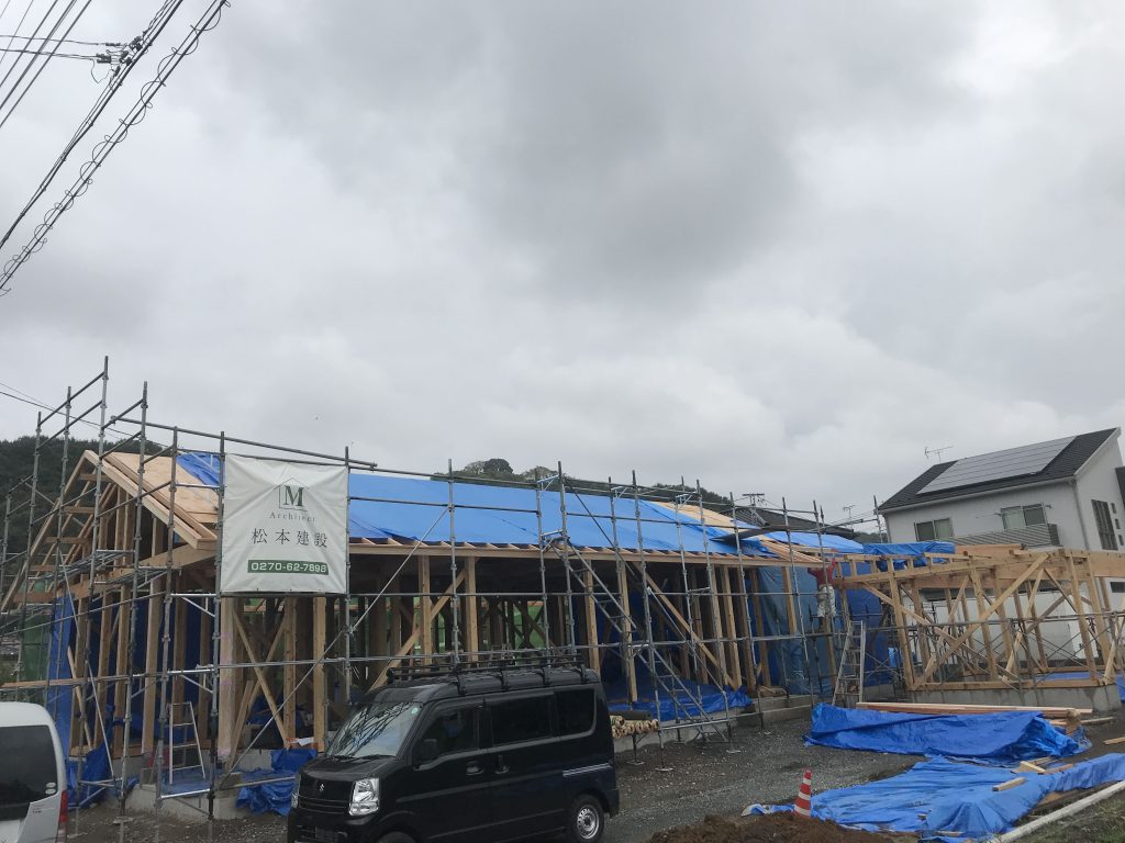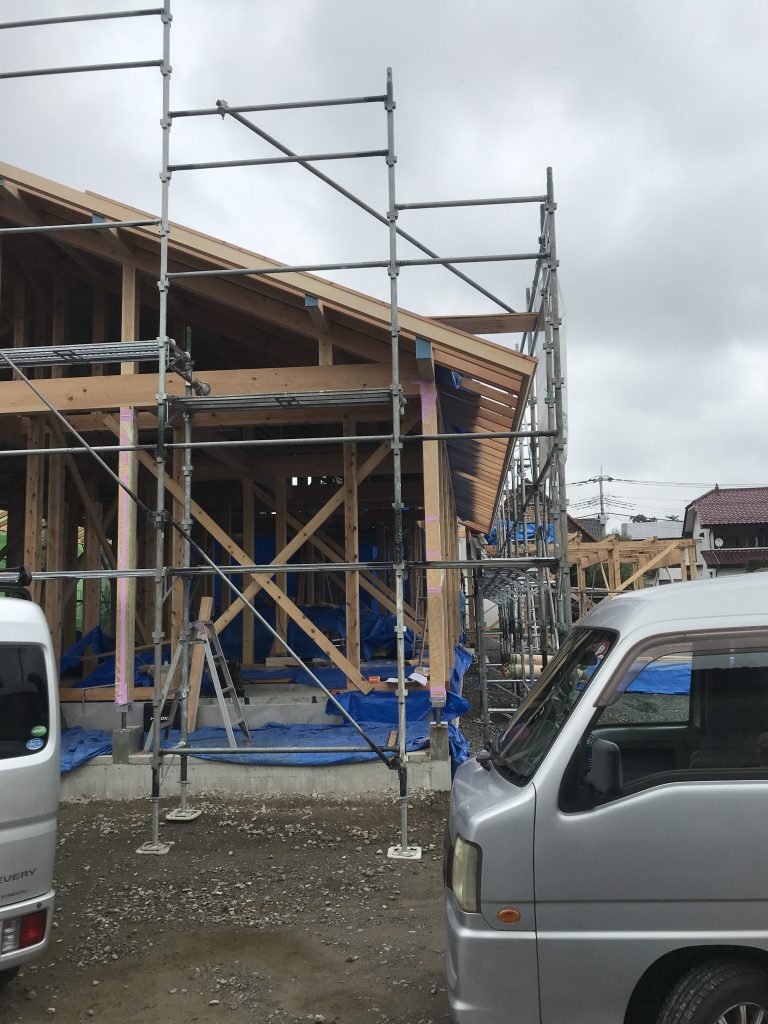 今回の現場は軒部分が化粧材です。その分屋根をかけるのに時間もかかりますがもう少しで屋根も目途が立ってきました。