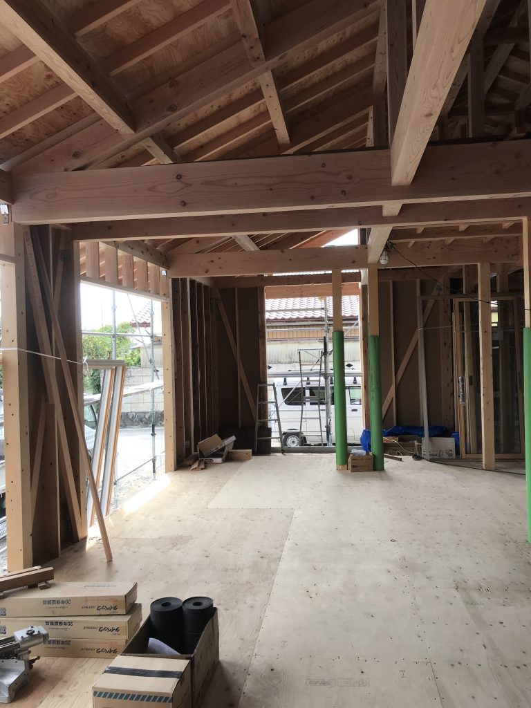壁の面材が貼られてきたら窓の感じが見えてきます。