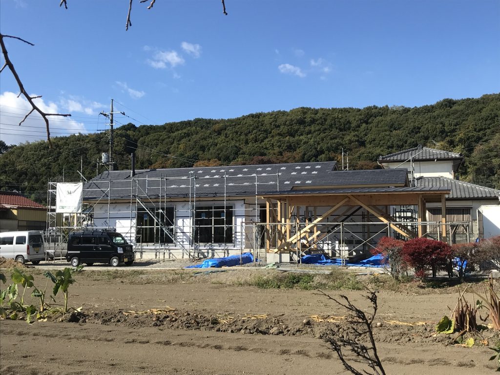 大間々の現場は、屋根工事も終わり外部もふさぐことが出来ました。