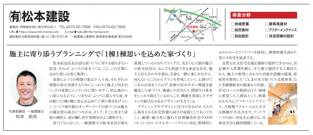 明日の上毛新聞すみかくらぶに松本建設が掲載されます。