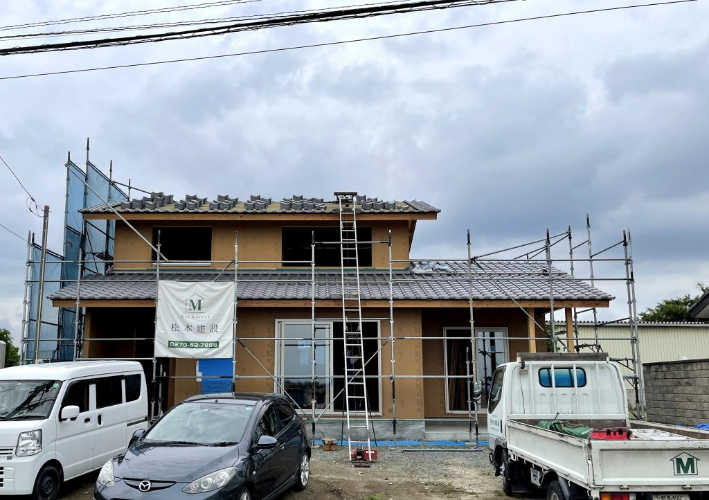 完成現場の紹介の中、先月末に伊勢崎市にて新たな家が上棟しました。