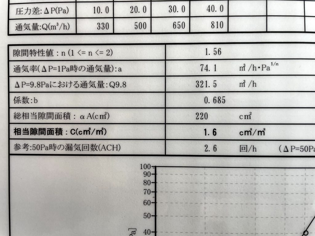 普段通りの施工で気密性はどの位の数値なのかを測定してもらいました。