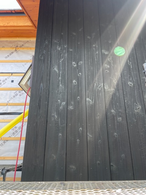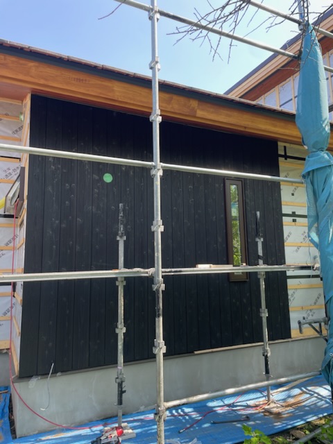 インスタにも載せましたが、焼杉の外壁材施工が始まりました。