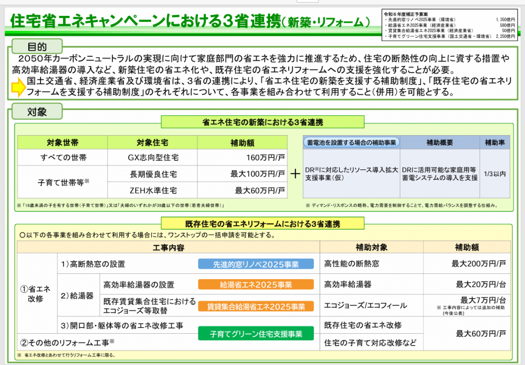 本年度、子育てエコホームや先進的窓リノベ等補助金が利用できましたが補正予算により同じような補助金が利用できそうです。