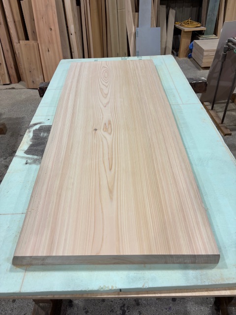 先日引渡しを終えたお宅に設置した桧の無垢カウンターの残りがあります。