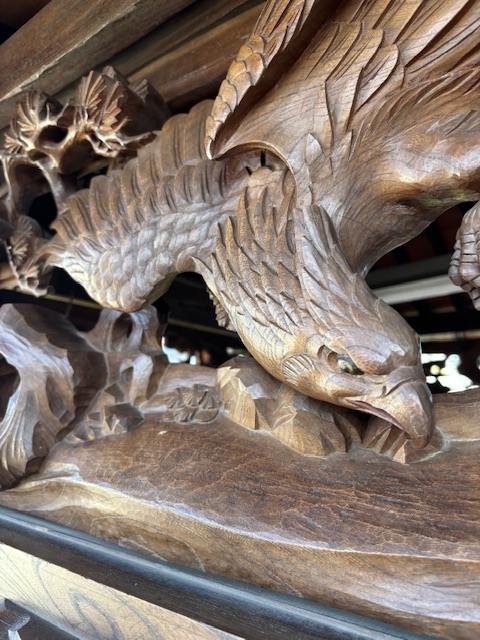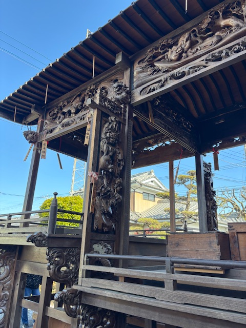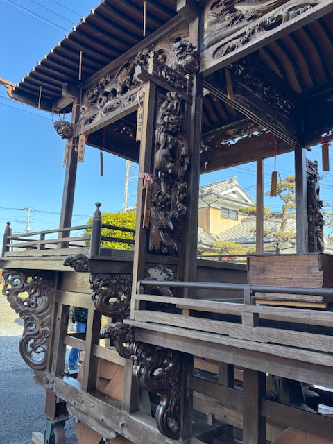 こんな田舎の町内にしまわれている屋台に見事な彫刻が刻まれています。