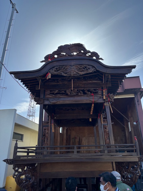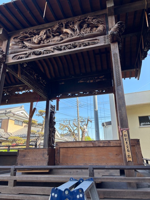 本屋台を屋台小屋から出して埃を払い彫刻を磨いていきます。